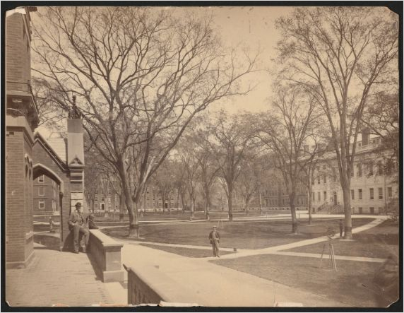 George stumbled, and caught himself—and his freight. President Eliot had consolidated printing in the basement of the University Hall (Hall 10). A new print shop needed a press, and a press needed type. The type had to be moved from its previous location. So—here was George, stumbling between the elms on his way from Wadsworth to University Hall, two hundred yards northeast (Hall 9).