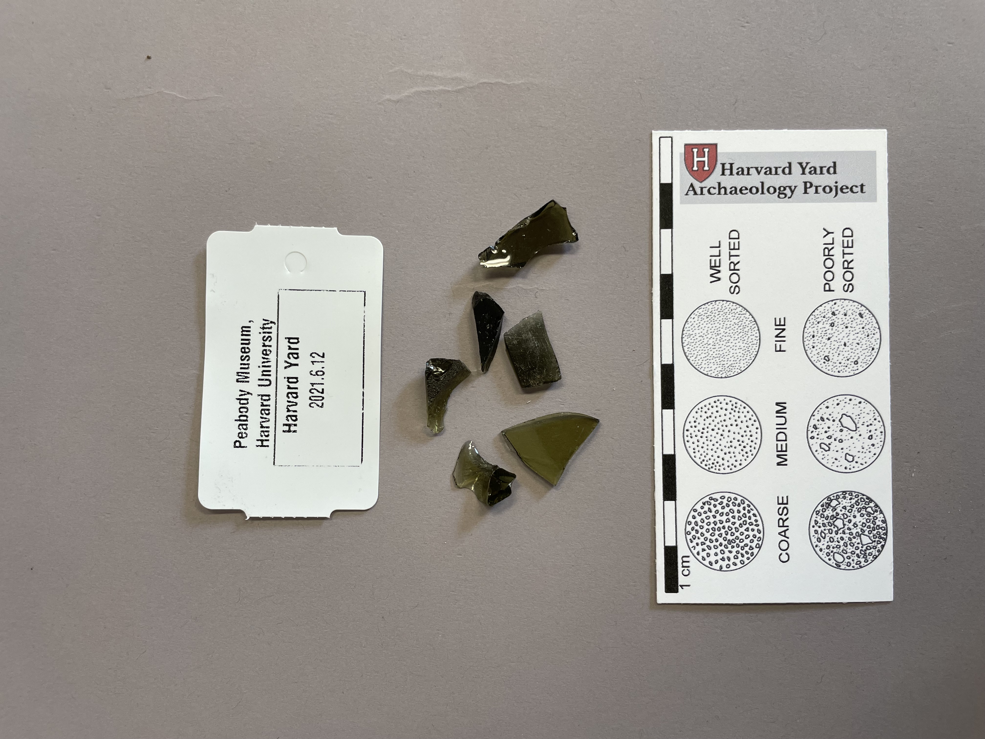 Fragments of olive green bottle glass