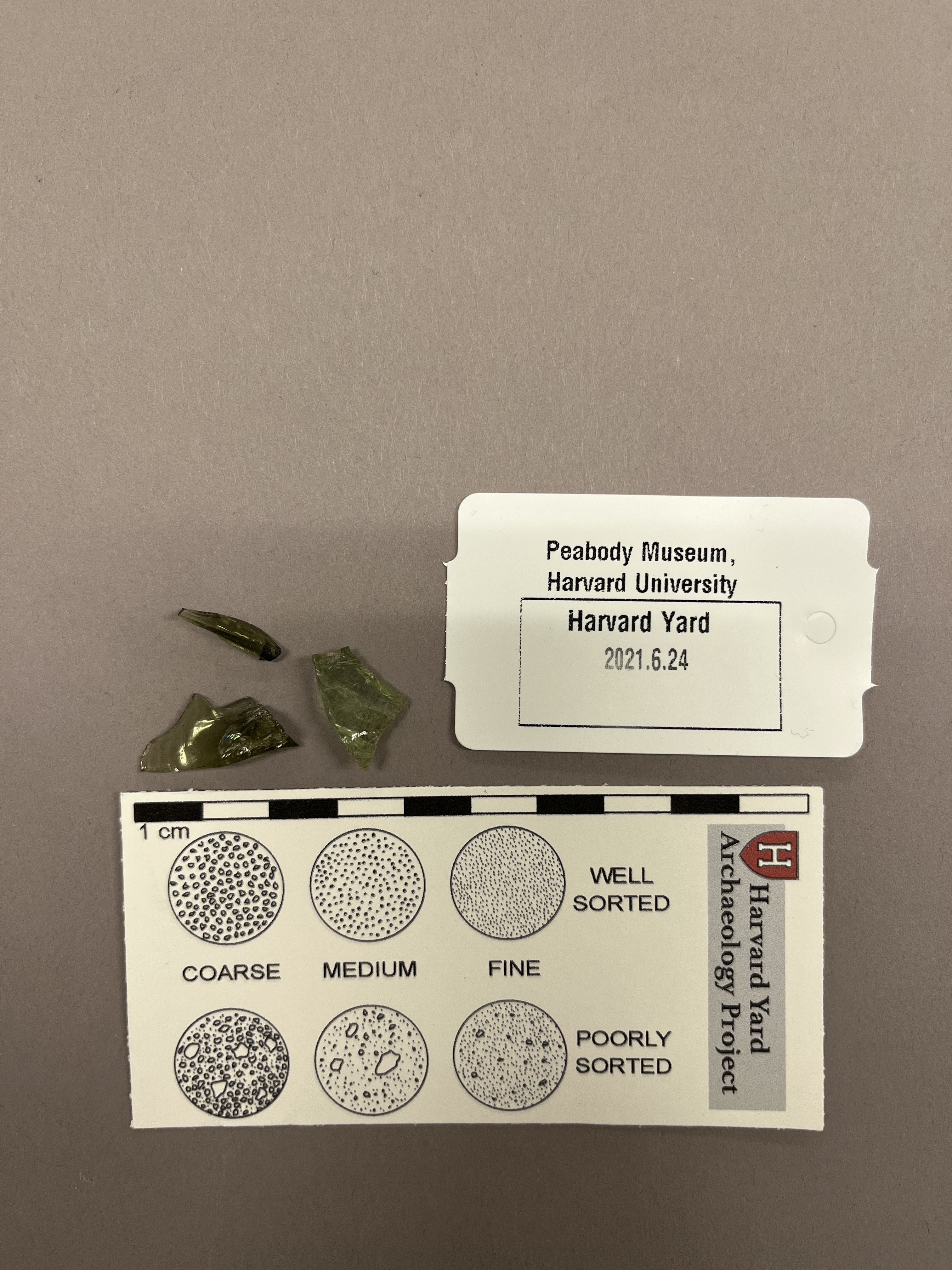 Three aqua shards of curved glass