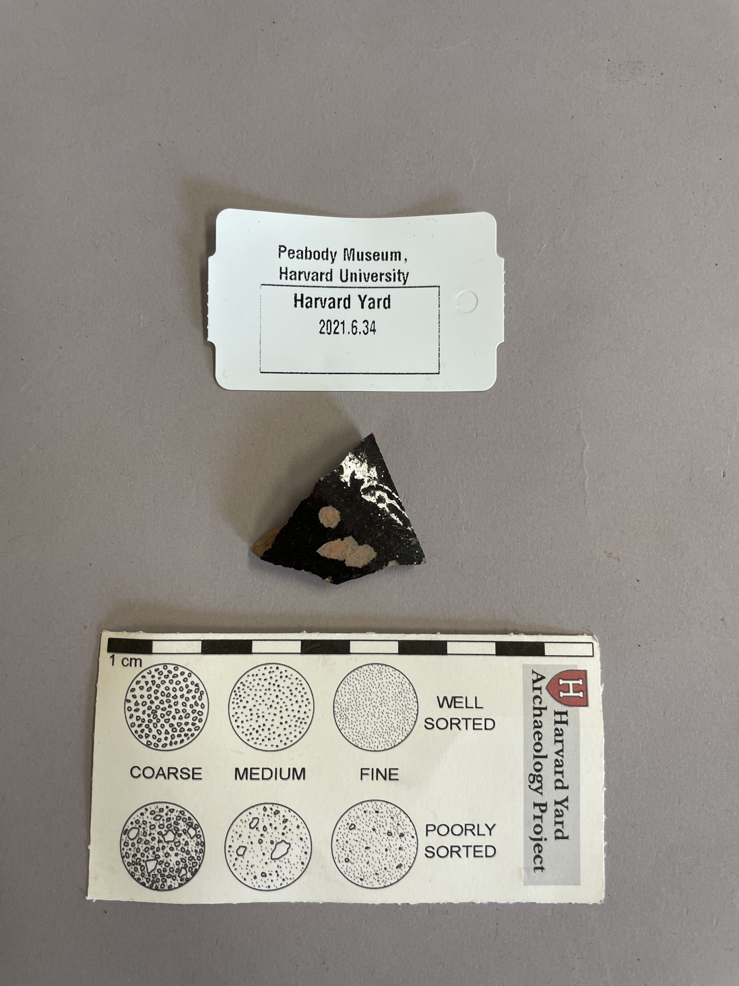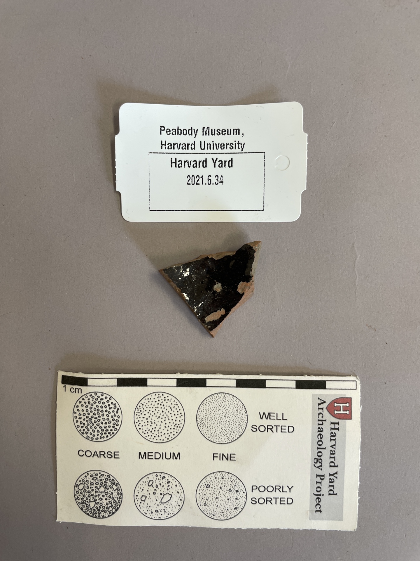 1 sherd of lead glazed redware, glazed on both sides.