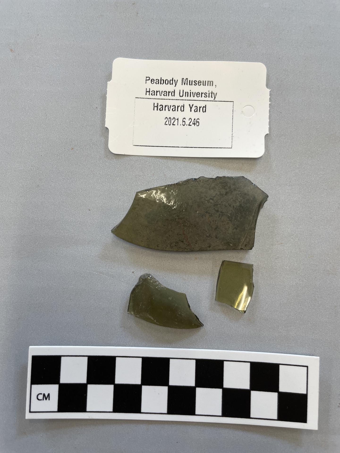 3 pieces of olive bottle glass