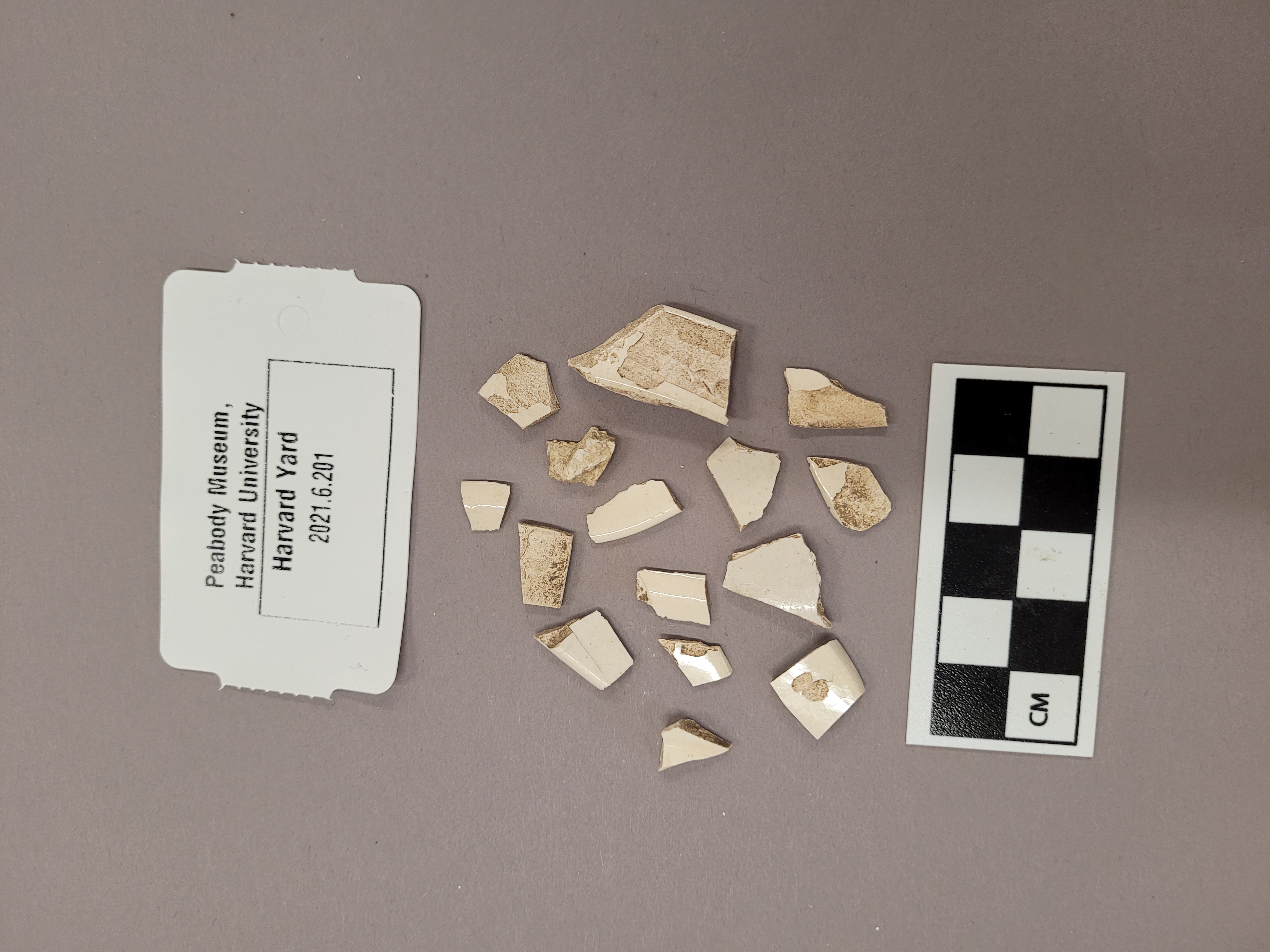 Several white-yellow creamware sherds. White bodied clay with shiny glaze