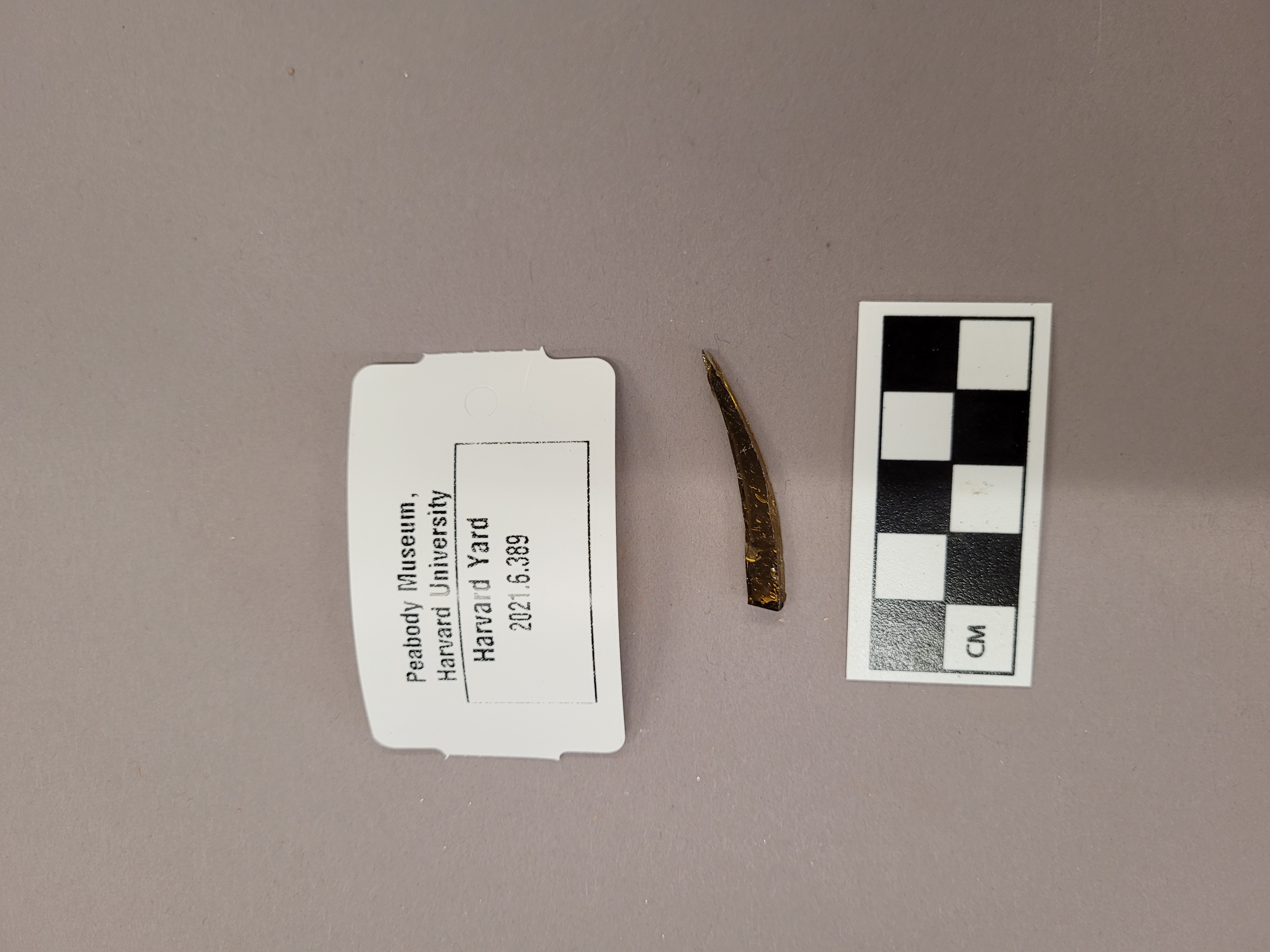 orange, green, tan colored glass sherd (flat)