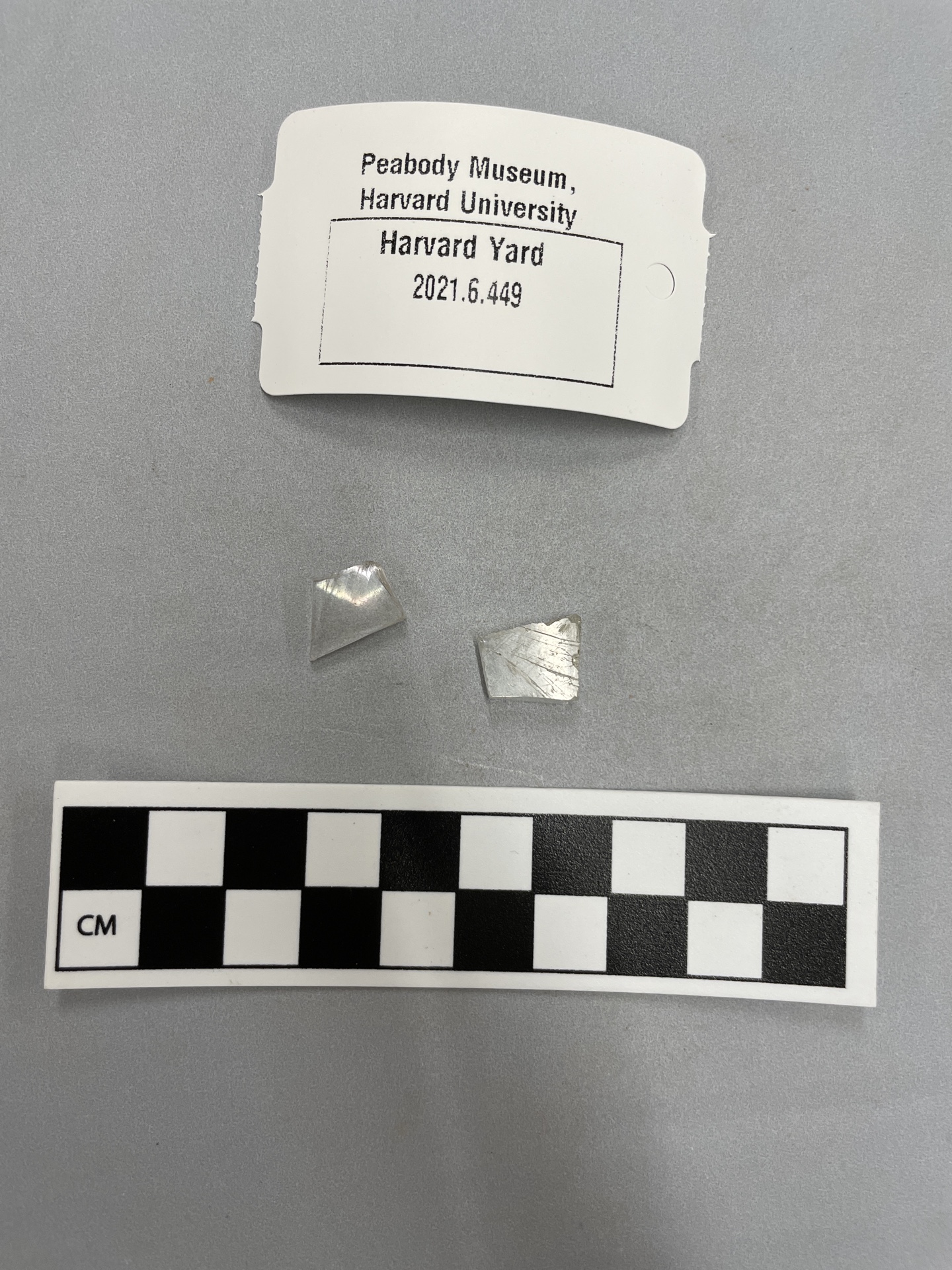 2 fragments of colorless flat glass, both fairly thick
