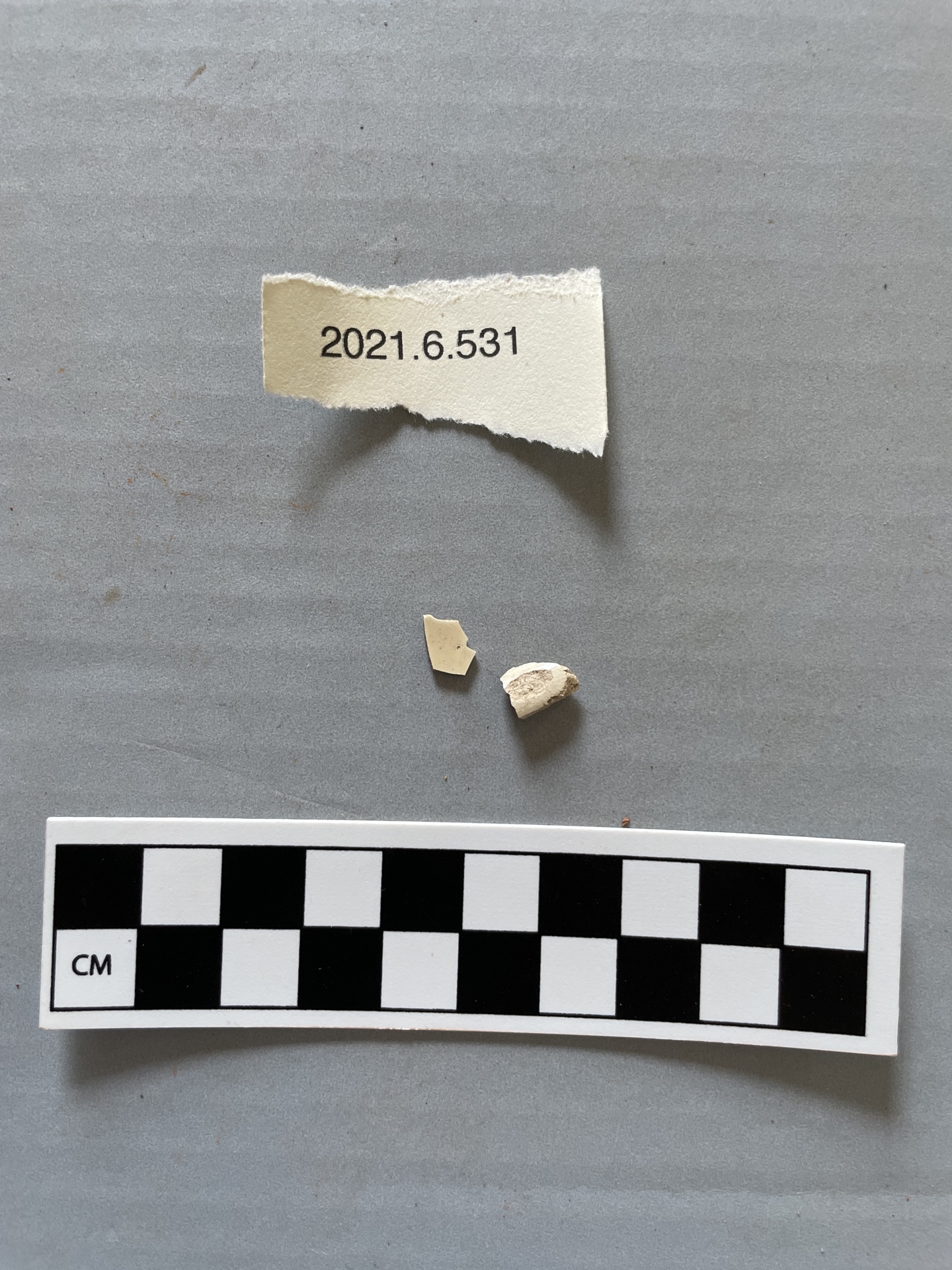2 creamware sherds, one extremely thin one appears to be just the glazed part ripped off a larger sherd