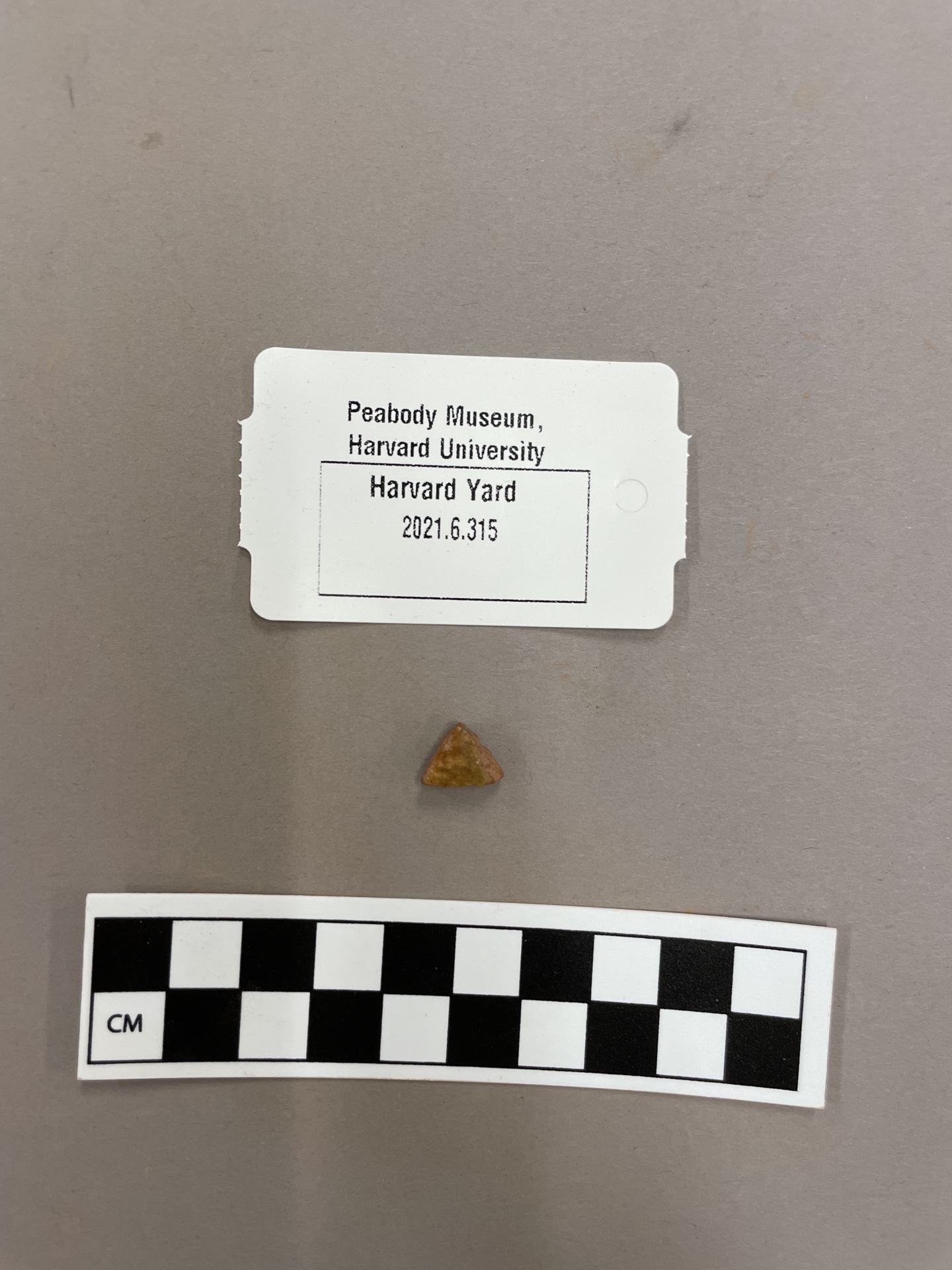 Lead glazed earthenware sherd, glaze is tan in color