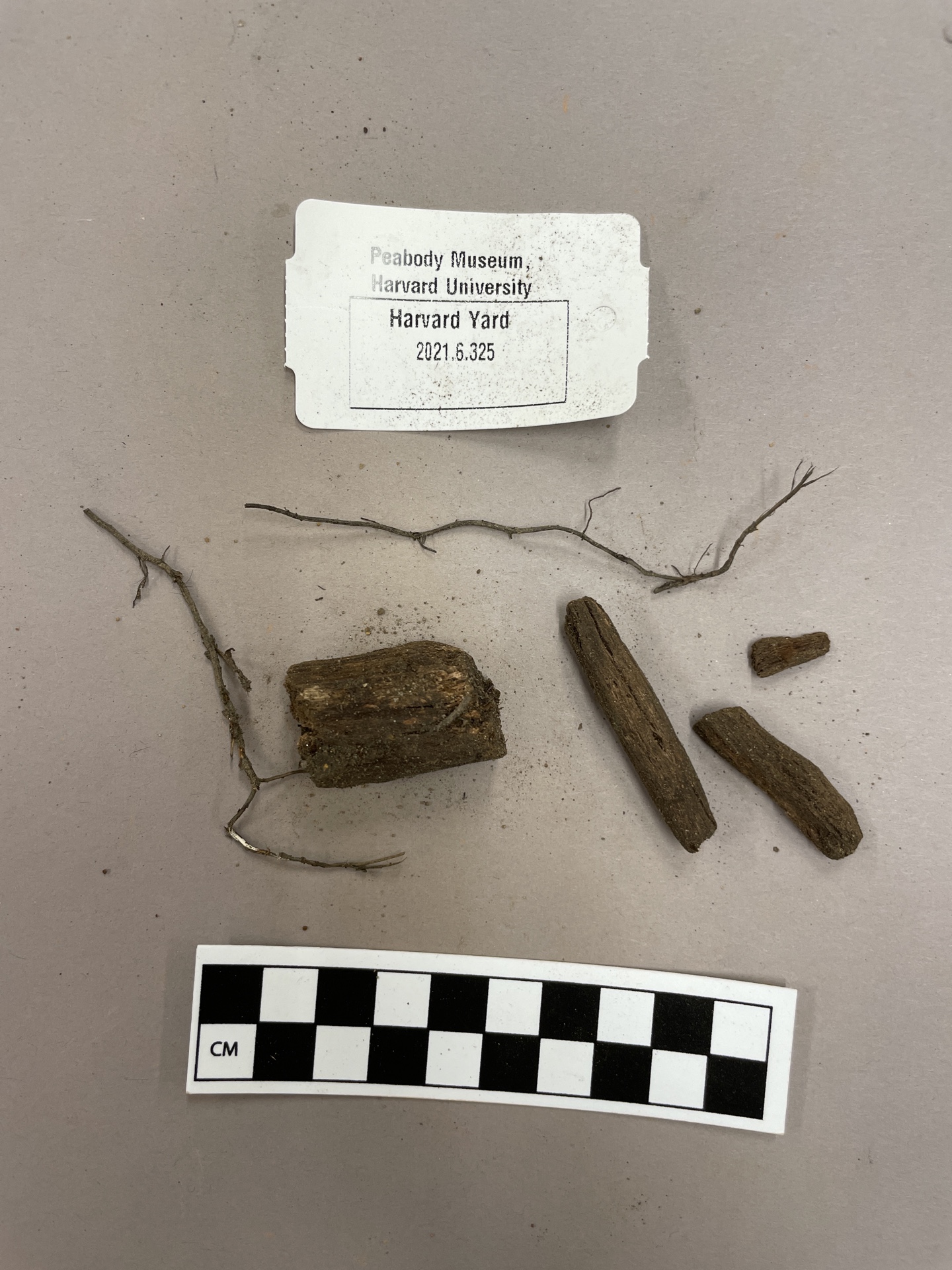 Various wood fragments from branches/roots, some thick, some very thin